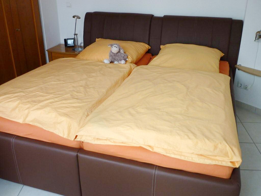 Schlafzimmer: Massives Schlafzimmer mit großem Kleiderschrank. (Betten 1,80 m x 2,00 m) Kleiner LED Fernseher (20 “) und DVD Player. Uhrenradio mit Projektion. Nachtschränkchen mit Leseleuchte.